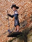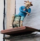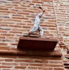 I was in Auvillar an embarrassingly long time before I remembered to look up. When I did, I discovered an abstract figure appended to our studio building that suggested both tumbler and hiker.
