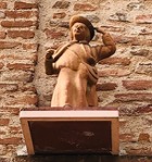 I took to climbing the hill to Auvillar once a day, often more. Looking up, I saw statues of pilgrims appended to corners of buildings and tucked under eaves. These delightful objects portrayed people from multiple walks of life—the pious, the joker, the observant, the established. Part whimsy and part encouragement, the sculptures are a visual refreshment after a rigorous climb.