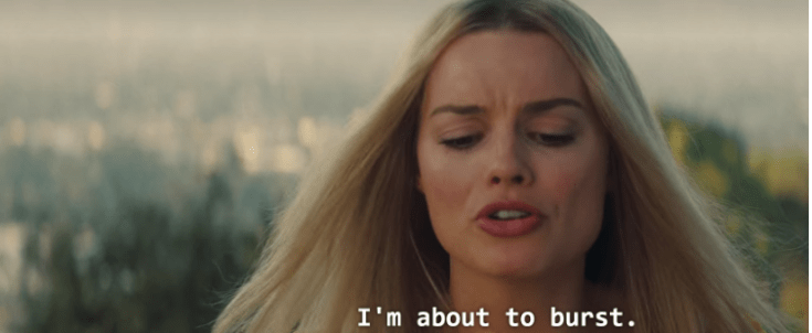 But the strongest part of the set up for the counterfactual surprise is the last thirty five minutes of the film. It begins with a narrative voiceover (Kurt Russell) describing the characters and actions. This narrator is omniscient, and so they’re telling us details about the characters’ thoughts and events that take place. They do this as if reading from a police transcript. In some ways it feels like a re-enactment. For instance, the narrator tells us that Sharon (Margot Robbie) has been joined “by Voytek Frykoswki, an old friend of Roman’s from Poland, and his girlfriend, social worker Abigail Folger, heiress to the vast Folger coffee empire.” These are two people who were killed in the actual murders, but we don’t have to know that to feel this is real.